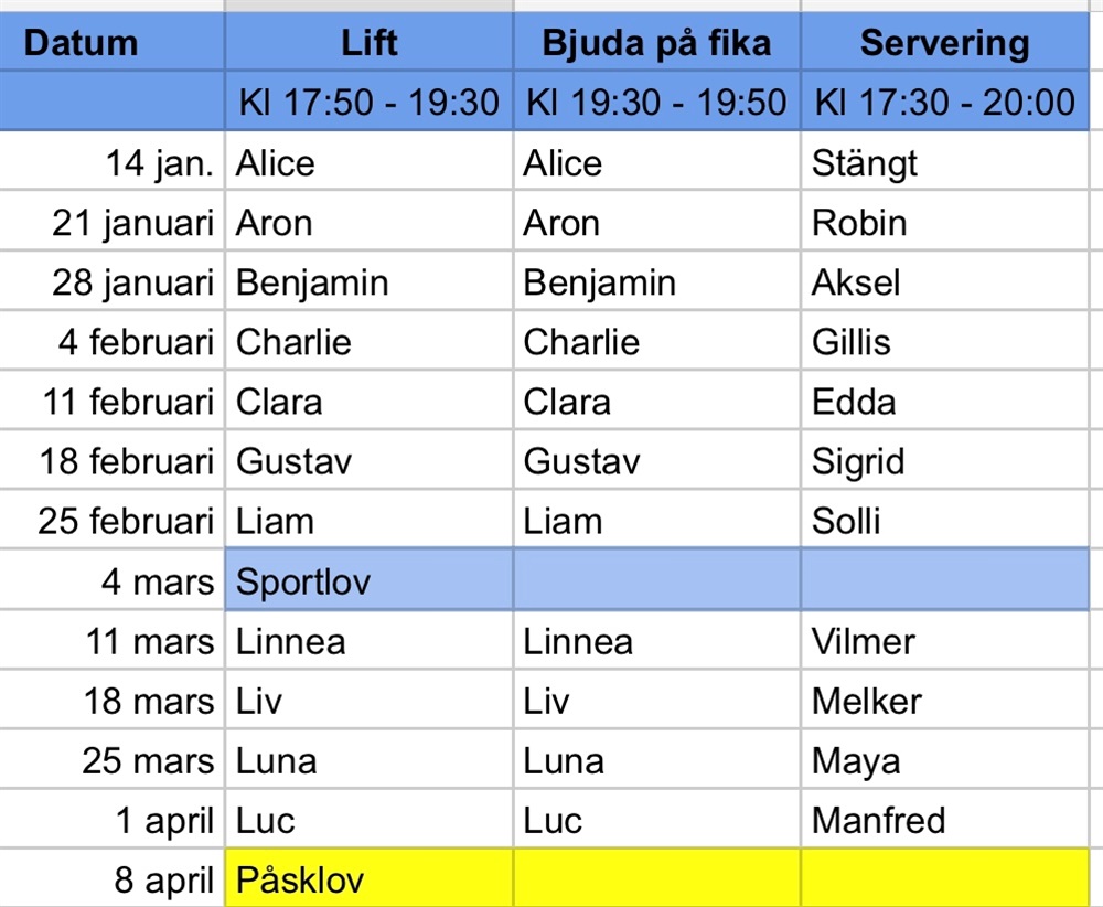 Vi vill också att en förälder skall finnas på plats under träning för att hjälpa sitt barn med ev. toalettbesök, om de vill gå in och värma sig eller liknande. Det är du som förälder som ansvarar för ditt barn i första hand och vi vill att ni första gångerna är med på skidor för att stötta. Därefter kan en bedömning göras om barnet kan klara sig på egen hand med tränare.