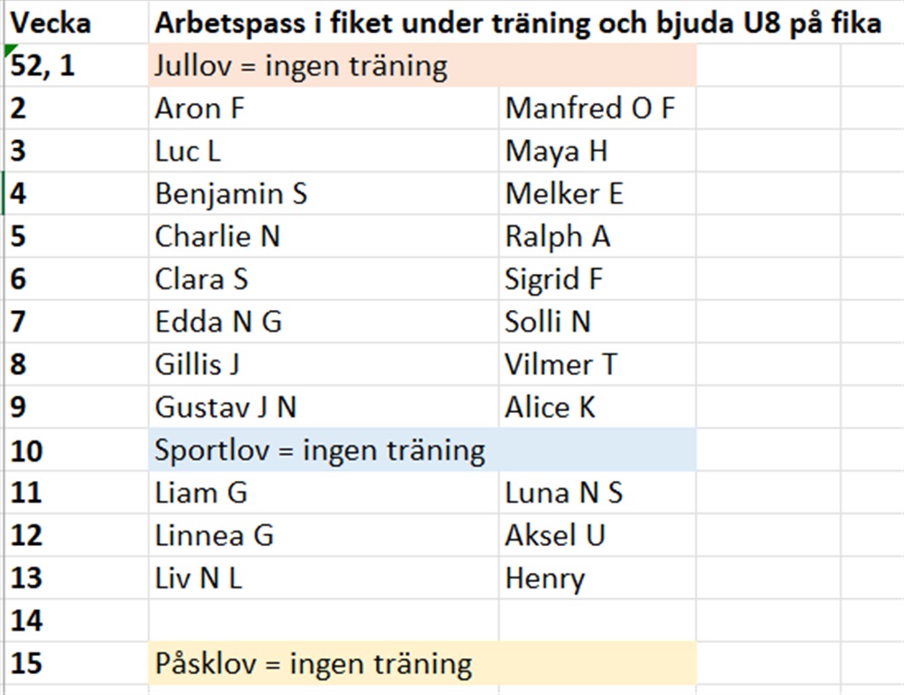 Fika-schemat har kompletterats med ett arbetspass i fiket per barn. På så vis blir det färre datum att hålla koll på. Så några barn har fått nya datum för att ta med fika. Byt pass med varandra om ni behöver och meddela mig vid byte så uppdaterar jag schemat.